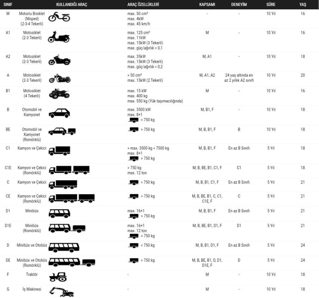 Ehliyet Sınıfları